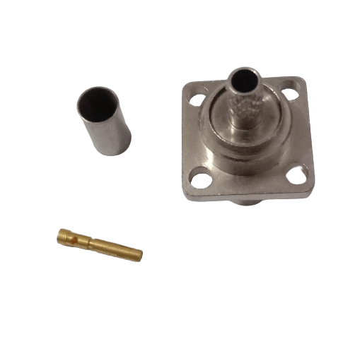 This BNC female 4-hole panel-mount connector is designed for secure, fixed installation on a chassis or enclosure using its standard 4-hole flange. The connector’s body is engineered to provide a permanent termination for LMR200 coaxial cable using a crimp-style attachment. This method is known for creating a strong, durable, and reliable electrical and mechanical bond that can withstand vibrations and physical stress. The secure mounting and robust construction make it an ideal choice for a wide range of professional applications, including broadcast equipment, test and measurement instruments, and industrial control systems.