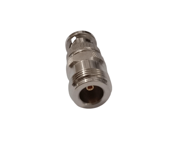 A BNC Male to N Female Adapter for connecting BNC and N-Type devices. It operates up to 3 GHz and is ideal for various RF applications.