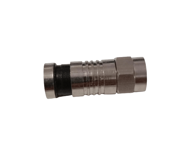 This F-Type male coaxial connector is engineered for high-performance, permanent termination of RG 6 coaxial cable. It employs a reliable compression-style termination that forms a strong, durable, and lasting electrical and mechanical bond. Compression connections are a standard for professional use, valued for their ability to withstand vibrations and physical stress. This connector is an excellent choice for a wide range of professional applications, including video surveillance, broadcast equipment, and data transmission links where a dependable connection is essential.