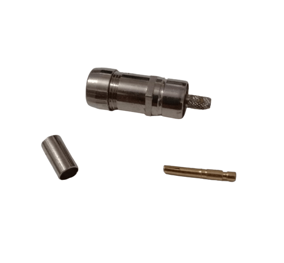 A miniature M4 male connector for BT 3002 coaxial cable. It uses a crimp termination for a secure and permanent bond in compact assemblies.