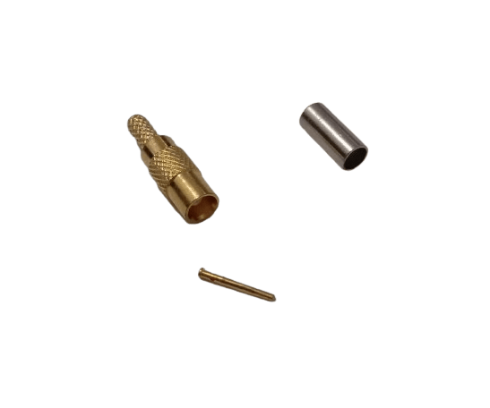 This MCX female coaxial connector is engineered for high-performance, permanent termination of LMR 100 coaxial cable. It utilizes a crimp-style termination, which provides a fast, secure, and permanent electrical and mechanical bond to the cable. The MCX interface is a sub-miniature push-on connector known for its compact size and reliable performance. This connector is an excellent choice for creating durable and dependable cable assemblies for a wide range of RF applications, including wireless networks and telemetry systems where a robust connection is crucial.