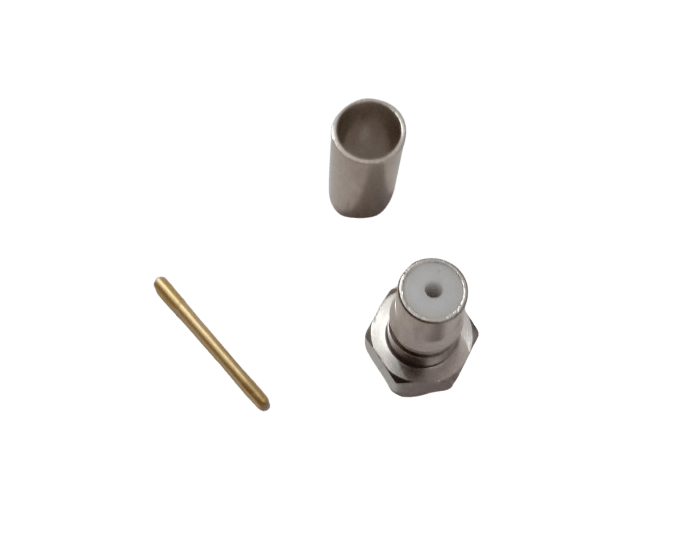 This QMA female coaxial connector is engineered for high-performance, permanent termination of LMR 200 coaxial cable. It utilizes a crimp-style termination, which provides a fast, secure, and permanent electrical and mechanical bond to the cable. The QMA interface is a quick-disconnect version of the SMA connector, known for its compact size and reliable performance. This connector is an excellent choice for creating durable and dependable cable assemblies for a wide range of RF applications, including wireless networks and telemetry systems where a robust connection is crucial.
