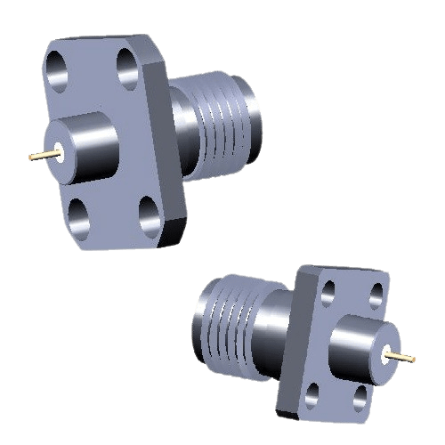 This SMA female 4-hole panel-mount connector is a versatile component designed for secure installation on a chassis or enclosure. It features a solder-only termination, which provides a permanent, low-loss electrical bond. This design is highly adaptable as it is not tied to a specific cable type, allowing for flexibility in custom cable assemblies. The 4-hole flange ensures a stable and secure mounting point, preventing rotation and physical stress on the connector. This component is a great choice for applications that require a robust and customizable panel-mount solution in professional RF, broadcast, and industrial settings.
