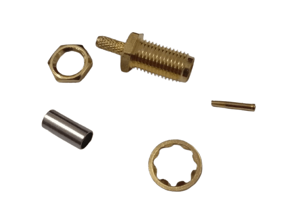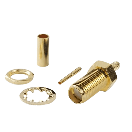 This SMA female bulkhead connector is engineered for secure and permanent mounting on equipment panels or enclosures. It is specifically designed to work with LMR100 coaxial cable. The crimp-style termination provides a fast, secure, and permanent electrical and mechanical bond to the cable. Crimp connections are known for their reliability and durability, making them an excellent choice for a wide range of professional applications, including telecommunications, test equipment, and industrial systems where a dependable connection is crucial.