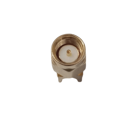 An SMA male connector for through-hole PCB mounting. It provides a secure, soldered connection for a stable connection point.