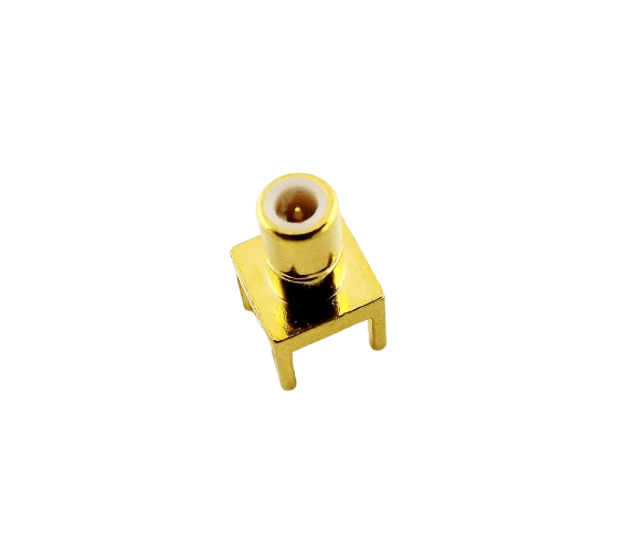 A standard SMB male connector designed for through-hole PCB mounting. It provides a secure, soldered connection for a stable connection point directly on a circuit board.