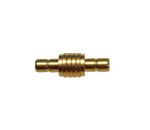A SMB Male to SMB Male Adapter for connecting two SMB female cables. It operates up to 4 GHz and provides a secure, inline connection.